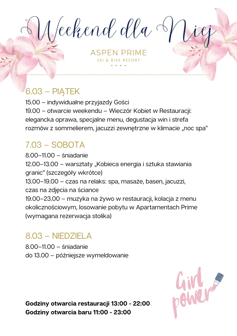 - Welcome drink for each lady upon check-in
